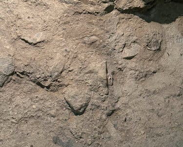 A brief visual analysis makes this concrete. In the exploded kiln piece, several plates cleaved along latent stress paths and left feathered edges and thin lips. Set with even spacing on sand, the group now reads as a low map of forces rather than a collapsed object. The measured gaps operate as drawn seams that hold the fragments together without pretending to restore a single intact form. Under raking light the seam reads first, then the shard, so drawing structures the reading from the ground up. This is the point where accident, repair and field become one language.