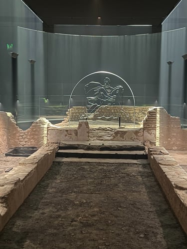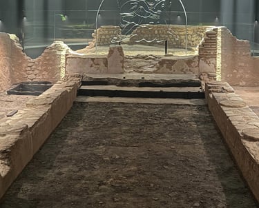 Sarah suggested that I study brokenness and the accidental as a subject. This redirected the work. A fragment is not waste. It is a record of a moment in time. The studio became an archaeological site where shards sit beside complete tiles so that erosion and clarity can speak to each other. A visit to the Mithraeum reinforced this. The artifact wall presents shards and tools as knowledge rather than as loss. A broken pot carries time better than a perfect copy. Accepting accident here also echoes a well known story from the history of art where an artist accepted a crack in a large panel of glass as part of the work. The point is not citation. The point is permission. The practice moves from control toward care. It works with what is present and lets material history remain legible.