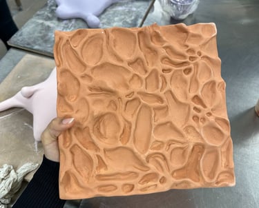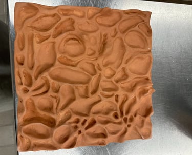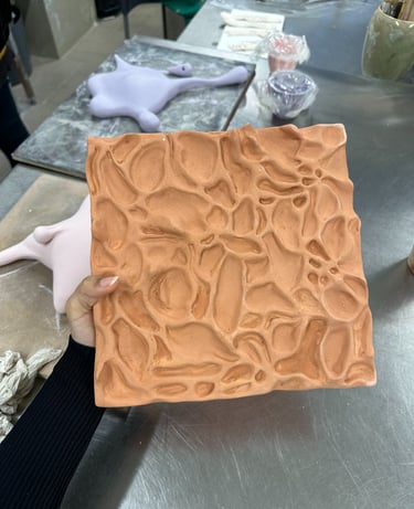 This reflection begins in the studio, with materials that act in time. Resin cures and holds shallow depth. Clay dries and shrinks and records a fine line where air has drawn out moisture. Sand moves inside a pour and settles into channels. I learned to keep these actions visible so that the surface can be read like a shore. The chapters follow headings proposed in tutorials with Sarah and through feedback from peers and visiting tutors. They show how separate studies became one installation and how that installation clarified an ethic of care and repair at the heart of the work. I refer to earlier pieces when they help the argument, but the focus remains on the present body of work. My earlier work already traced water as presence and as trace. Layered inks and resin suggested hidden depth and a soft atmosphere that changed with the viewer’s movement. Those images taught rhythm and restraint. When I entered the course the questions moved from image into matter. I began simple tests with resin, sand, clay and pigment to see how each behaves over time. In Unit 2 I made the first families of relief tiles and thin resin skins. The work titled When the Water Left brought the language together for the first time. Translucent resin gathered light like shallow water. Clay and sand kept dry edges and fine lines like the memory of retreat. I still thought in single statements. Unit 3 taught me to think in fields and fragments. What began as a picture of water became a condition where matter remembers time.