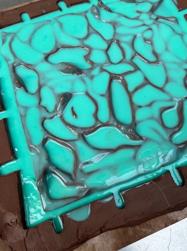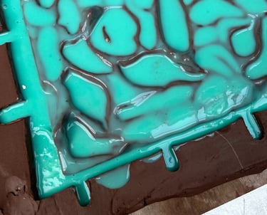 Earlier paintings already taught me that translucency can carry mood through time. That lesson returns now as a slight veil in thin silicon moulds where depth reads as shallow water rather than shine. The small shift from glossy reflection toward soft depth is decisive.